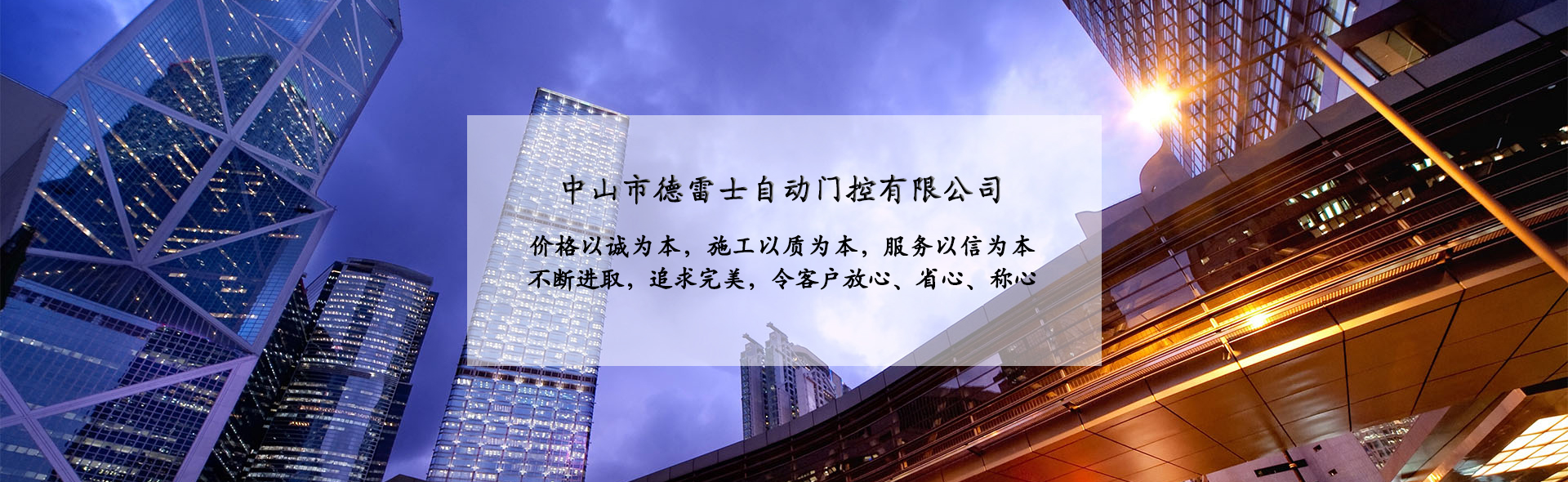 中山市德雷士自動(dòng)門控有限公司代理中山松下自動(dòng)門、中山松下感應(yīng)門、及其旗下品牌松下(Panasonic)自動(dòng)門、旋轉(zhuǎn)門、型材門、松下門禁系統(tǒng)、地彈簧、閉門器等系列產(chǎn)品。 松下Panasonic一直致力于憑借不斷創(chuàng)新的技術(shù)營(yíng)造為各個(gè)區(qū)域的用戶做出最佳解決方案,在自身領(lǐng)域處于領(lǐng)先地位;松下自動(dòng)門控系統(tǒng)廣泛應(yīng)用于寫字樓、機(jī)關(guān)單位、大型企業(yè)、學(xué)校、醫(yī)院、智能小區(qū)等領(lǐng)域。在用戶心中有良好的口碑及信譽(yù)度。 松下(Panasonic)自動(dòng)門控系統(tǒng)包含:自動(dòng)感應(yīng)門、旋轉(zhuǎn)門、90度平開門、圓弧型門、重疊門、緊急逃生門、醫(yī)用門、氣密門、鋁合金型材門、松下門禁系統(tǒng)、家庭智能鎖、地彈簧、閉門器等系列產(chǎn)品。 德雷士自動(dòng)門控有限公司從事智能門控十余載,精英匯聚;公司具有完善的管理體系,對(duì)每位客戶都進(jìn)行檔案管理,跟蹤服務(wù),定期回訪,終生維修。提供急修12小時(shí)解決,一般維修48小時(shí)解決的服務(wù),完全能解決您的后顧之憂。 公司的質(zhì)量方針 科學(xué)管理確保的工程質(zhì)量 真誠(chéng)服務(wù)贏得客戶信譽(yù) 持續(xù)創(chuàng)新打造企業(yè) 公司的服務(wù)宗旨 價(jià)格以誠(chéng)為本,施工以質(zhì)為本,服務(wù)以信為本。 實(shí)實(shí)在在做人,老老實(shí)實(shí)做事,以我們的辛苦換來客戶滿意的微笑,這就是我們的追求! 公司的目標(biāo) ...